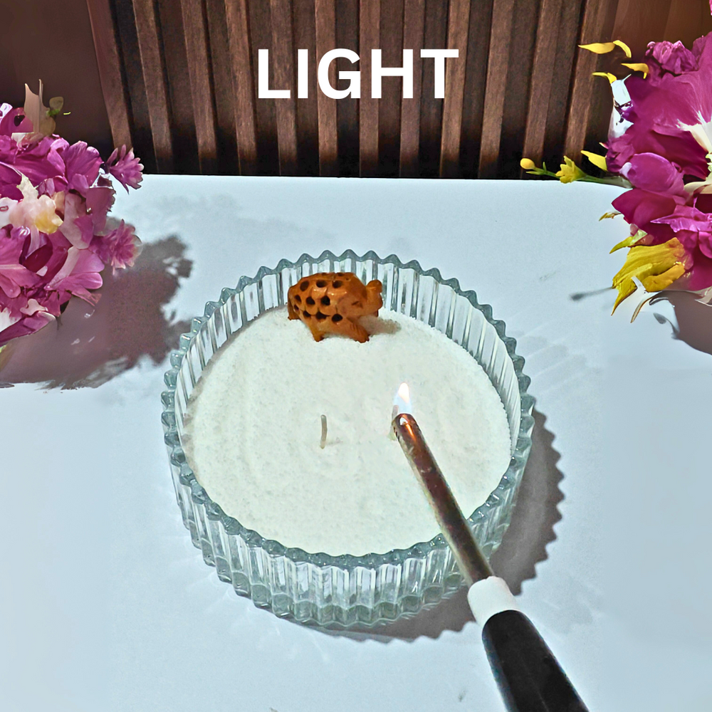 Always place the wick in the center of your container and press it down gently into the sand so it stands firm. Leave only 1/4th of the wick outside. A centered wick ensures an even melt and prevents tunneling. If you’re using a wide container, add two or more wicks spaced apart for an even burn across the surface.