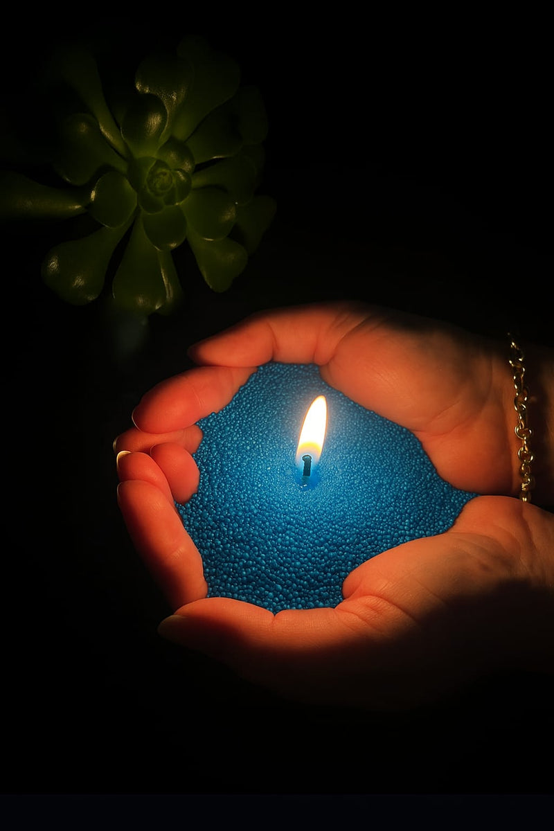 Pearled sand candles are made of tiny wax granules that look like decorative sand. Instead of being poured into a mold, the wax is loose and reusable. Only the wax touching the wick melts as it burns, which makes these candles more customizable, interactive, and longer-lasting than traditional poured candles.