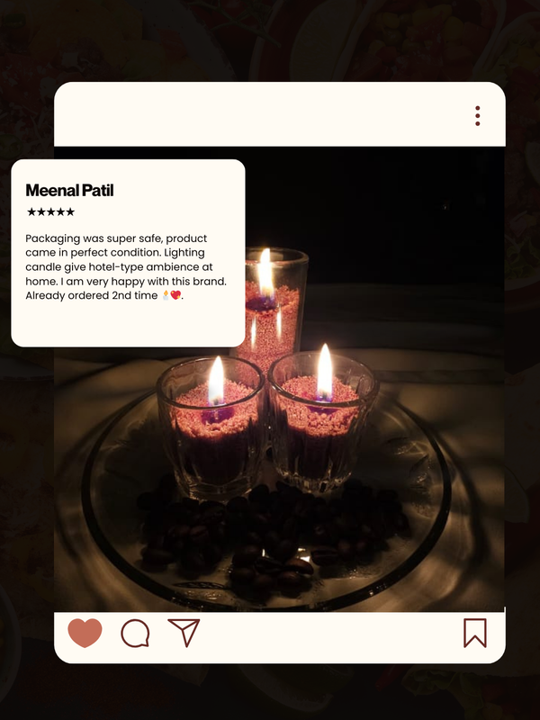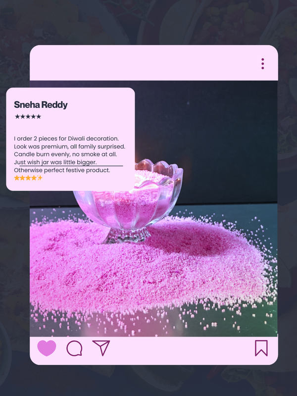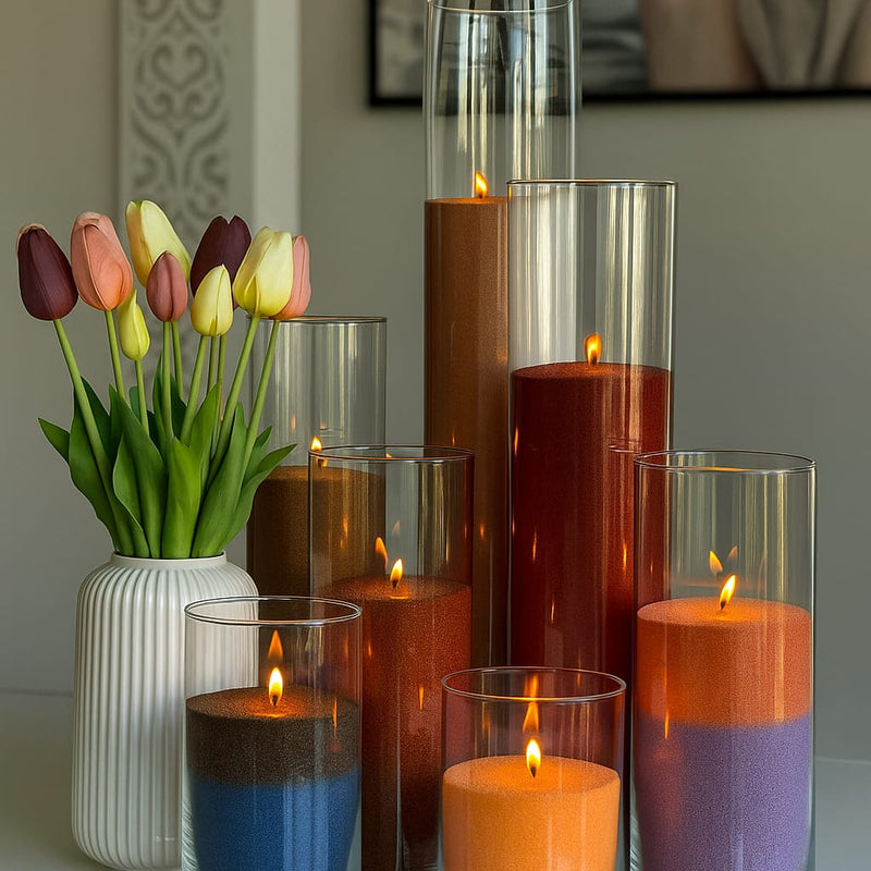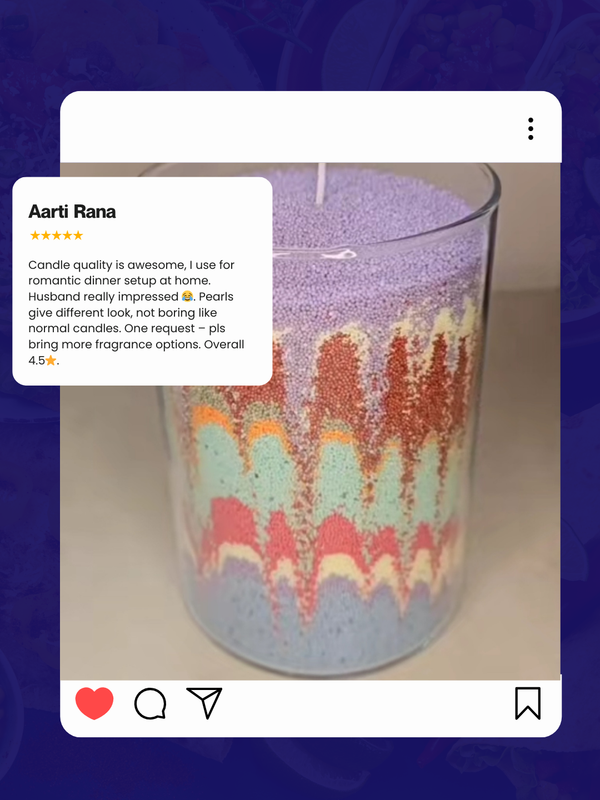 Absolutely! Our wide range of scents and colors is designed to be mixed, matched, and layered. You can create your own signature fragrance blends or layer different colors for a stunning sand-art effect. Many customers love customizing their candles for festive occasions like Diwali, Christmas, and New Year — combining vibrant colors and complementary fragrances to match the celebration. Each candle becomes both a beautiful decoration and a unique scent experience.