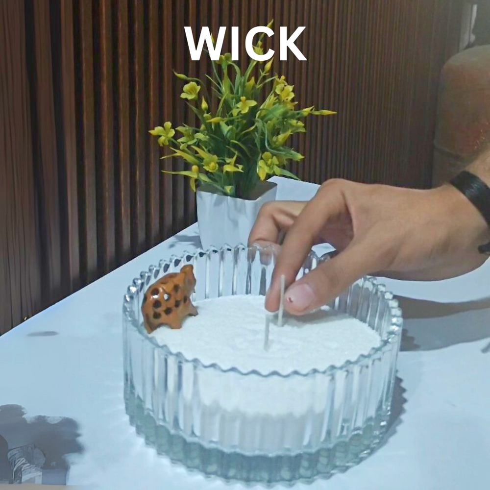 Always place the wick in the center of your container and press it down gently into the sand so it stands firm. Leave only 1/4th of the wick outside. A centered wick ensures an even melt and prevents tunneling. If you’re using a wide container, add two or more wicks spaced apart for an even burn across the surface.