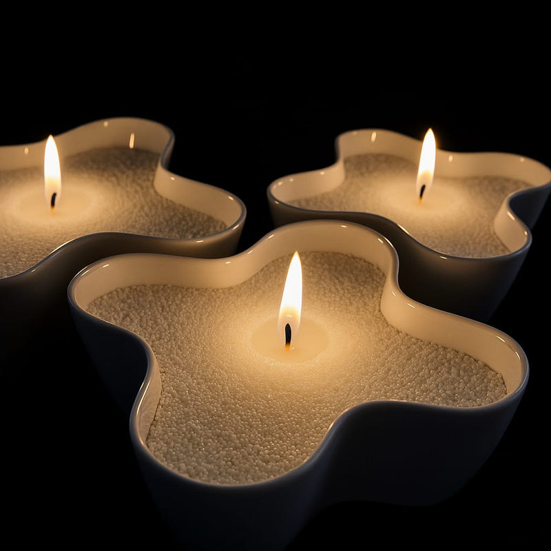 Pearled sand candles are made of tiny wax granules that look like decorative sand. Instead of being poured into a mold, the wax is loose and reusable. Only the wax touching the wick melts as it burns, which makes these candles more customizable, interactive, and longer-lasting than traditional poured candles.